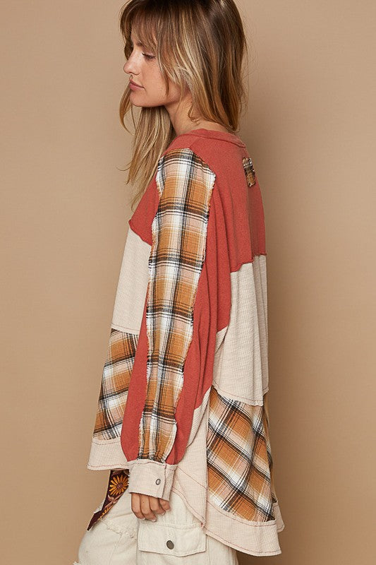 Plus Sequins Velvet Color Block W/ Back Button Top