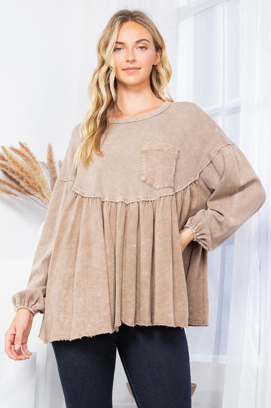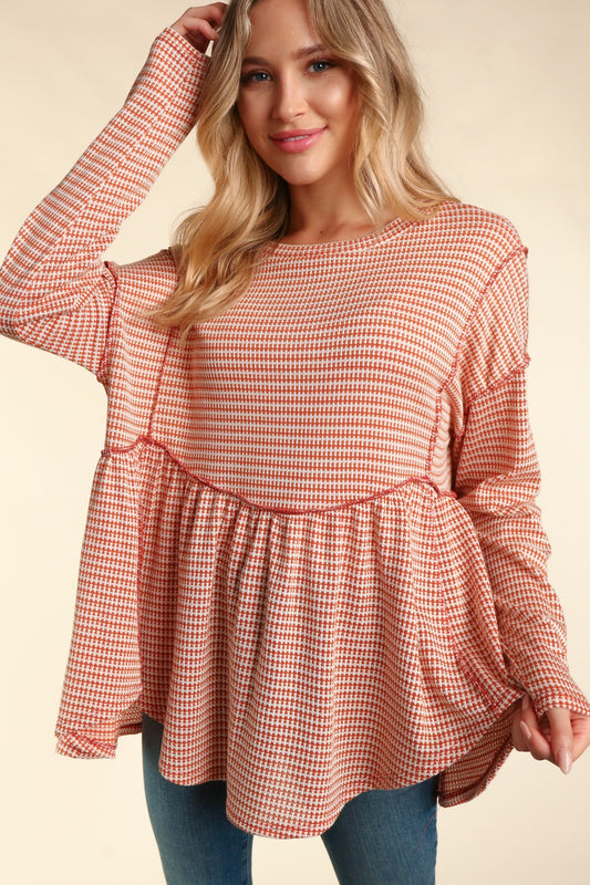 Long Sleeve Solid Urban Ribbed Christmas Top