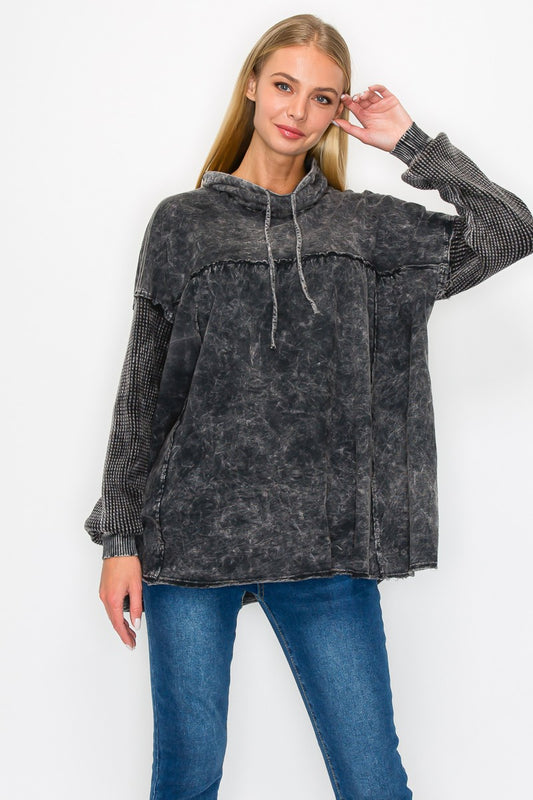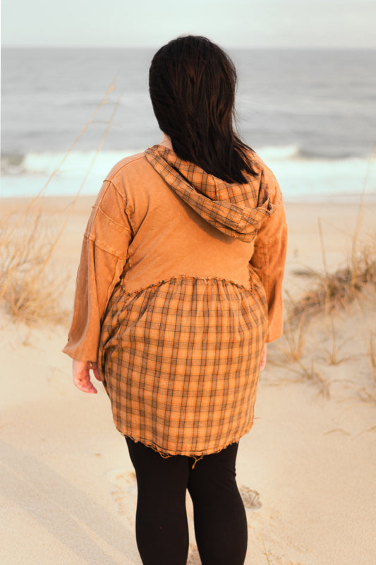 Mineral Wash Plaid/Flannel Hoodie Babydoll Tunic